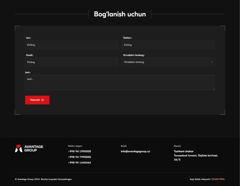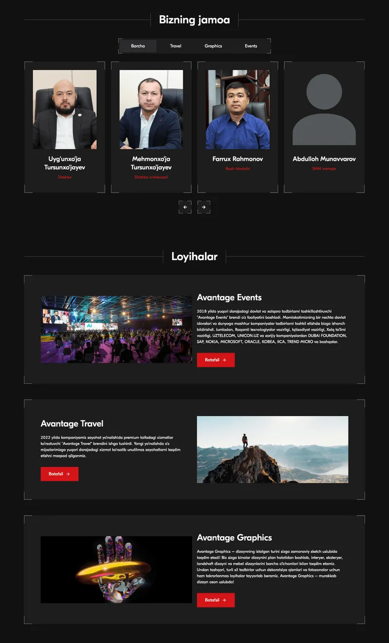 To date, AVANTAGE has undertaken numerous high-profile state and international projects. The company has organized events involving high-ranking officials, collaborated with governmental institutions such as the Ministry of Digital Technologies, Ministry of Economy, Ministry of Education, Youth Agency, UZTELECOM, UNICON.UZ, and international companies like DUBAI FOUNDATION, SAP, NOKIA, MICROSOFT, ORACLE, KOBEA, JICA, TREND MICRO, among others.